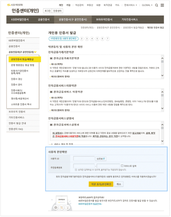국민은행 공인인증서 재발급순서