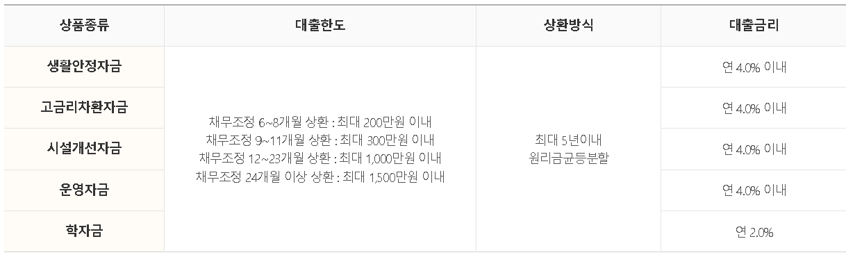 현재 신용회복위원회에서 지원하고 있는 대출제도는 다음과 같이 2가지 대출상품이 있습니다.