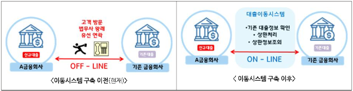 ① 다만 주담대의 대환대출은 금융결제원 시스템을 통해 전산화가 가능한 대출금 상환 외에도 등기이전이 필요하여, 금융회사 간 모든 절차를 온라인 구현하는 것은 어려운 측면이 있습니다.
