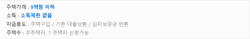 우대형 : 주택가격 6억 이하, 부부소득 1억 이하