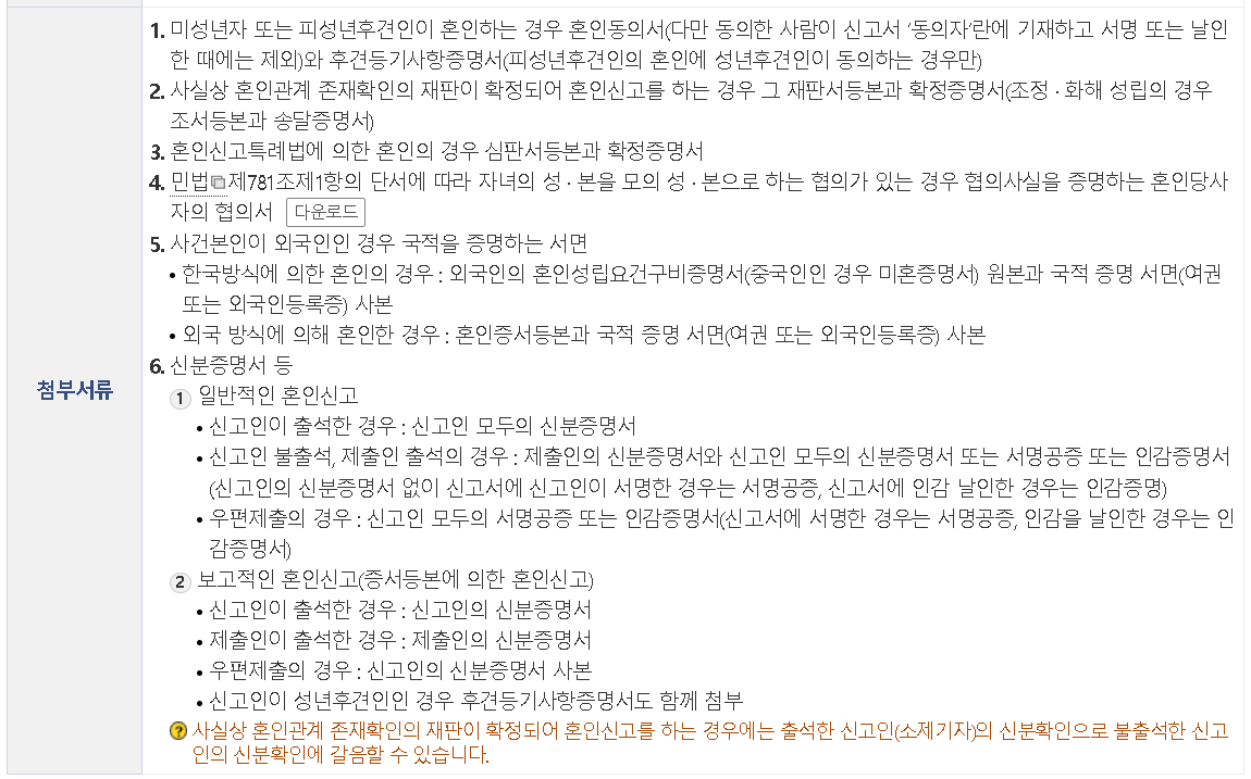 혼인신고 준비물